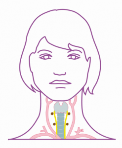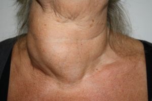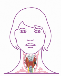 Hinsichtlich der operativen Strategien Jahren hat es in der Chirurgie in den letzten Jahren einen Paradigmenwechsel hin zu einem differenzierten und risikoadaptierten Vorgehen gegeben. Bei suspekten Knoten erfolgt zunächst eine Hemithyreoidektomie der tumortragenden Seite mit einer intraoperativen pathologischen Schnellschnittuntersuchung. Nach den aktuellen deutschen Leitlinien wird ein nicht-organüberschreitendes, nicht metastasiertes und lokal komplett entferntes PTC <10 mm dadurch ausreichend radikal behandelt. Allerdings wird zu Recht betont, dass die 10 mm keine feste Grenze darstellen und somit Behandlungskorridore unter Einbeziehung pathologischer und patientenbedingter Gesichtspunkte bestehen. Dabei ist zu berücksichtigen, dass auch PTC < 10 mm multifokal auftreten können und das Risiko einer Lymphknotenmetastasierung bei bestimmten pathologischen Varianten bereits ab einer Tumorgröße von 5 mm steigt (5). Im eigenen Krankengut haben wir festgestellt, dass bei PTC < 10 mm, die im Rahmen dieser Korridore radikal operiert wurden, bei etwa jeder 3. Operation weitere intrathyreoidale Karzinomherde oder Lymphknotenmetastasen entfernt wurden. Es ist derzeit unklar, welche Relevanz diese Beobachtung hat, da ja in den Fällen mit Verzicht auf eine komplette Thyreoidektomie auch keine Radiojodtherapie erfolgt. Bei PTC > 10 mm gilt die komplette Thyreoidektomie als Standardverfahren. Wenn die Thyreoidektomie nicht schon bei der Primäroperation erfolgte, sollte bei erst postoperativer Krebsdiagnose so rasch wie möglich eine Komplettierungsthyreoidektomie erfolgen. Wegen Verwachsungen ist das Komplikationsrisiko einer solchen Operation in der Phase zwischen dem 4. postoperativen Tag bis zum 3. Monat erhöht. Unter der Voraussetzung, dass der Tumor bei der Erstoperation lokal komplett entfernt wurde, kann für die Komplettierungs-Thyreoidektomie die aktive Vernarbungsphase abgewartet und zur Senkung des OP-Risikos erst nach 3 Monaten operiert werden. Zusätzlich zur Thyreoidektomie sollten alle erkennbaren Lymphknotenmetastasen entfernt werden. Heutzutage erfolgt die Lymphadenektomie beim Schilddrüsenkarzinom nicht als klassische oder funktionelle Neck-Dissection, sondern Kompartment-orientiert (2). Im deutschsprachigen Raum hat sich dafür eine Einteilung in 4 Kompartimente durchgesetzt (1 = zervikozentral, 2 = zervikolateral rechts, 3 = zervikolateral links, 4 = oberes infrabrachiocephales Mediastinum).